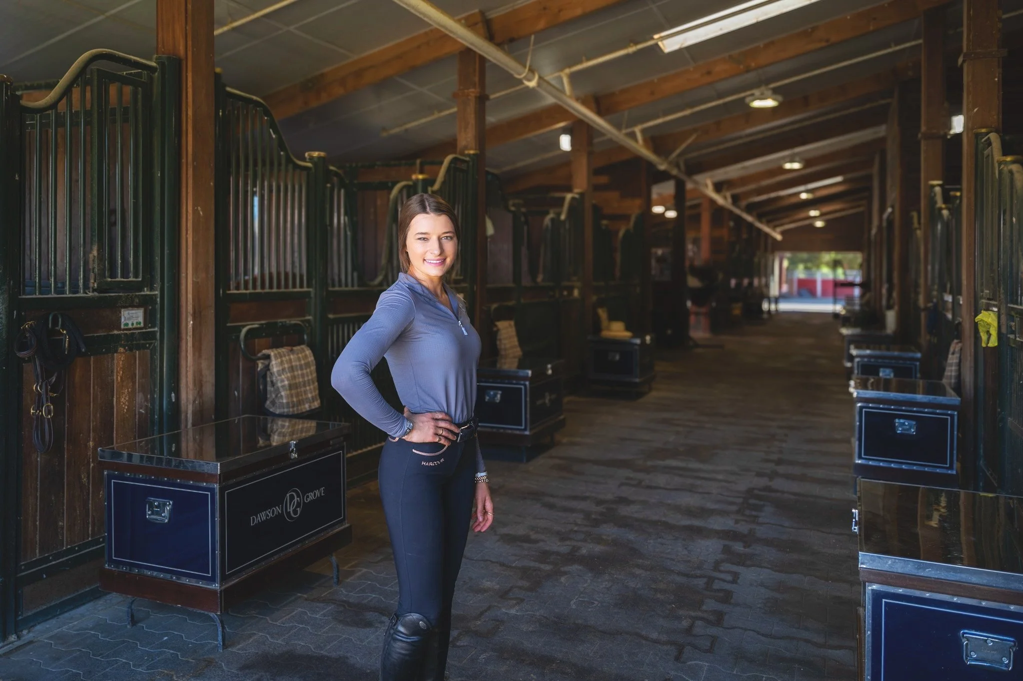 Zoe Brown grew up surrounded by horses, with both her mother and father deeply rooted in horse training. Initially, Zoe loved simply being around the horses but found her passion for riding at age 10, eventually leading to a successful career in competitive equestrian sports. She is currently competing in Grand Prix events, bringing a unique perspective and empathy to her work with riders due to her personal experiences managing pressure in high-stakes competitions. Believing that success is built on hard work, determination, and patience, Zoe focuses on helping riders cultivate strong, confident relationships with their horses. Her approach equips clients with the tools to excel both in the show ring and in their overall equestrian journeys. This philosophy is deeply rooted in her belief that growth takes time and commitment.